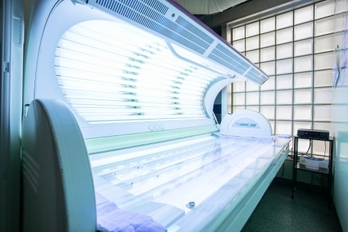 顔はもちろん肩やデコルテなどベッドマシンで焼けにくいところもきれいに焼くことが可能。